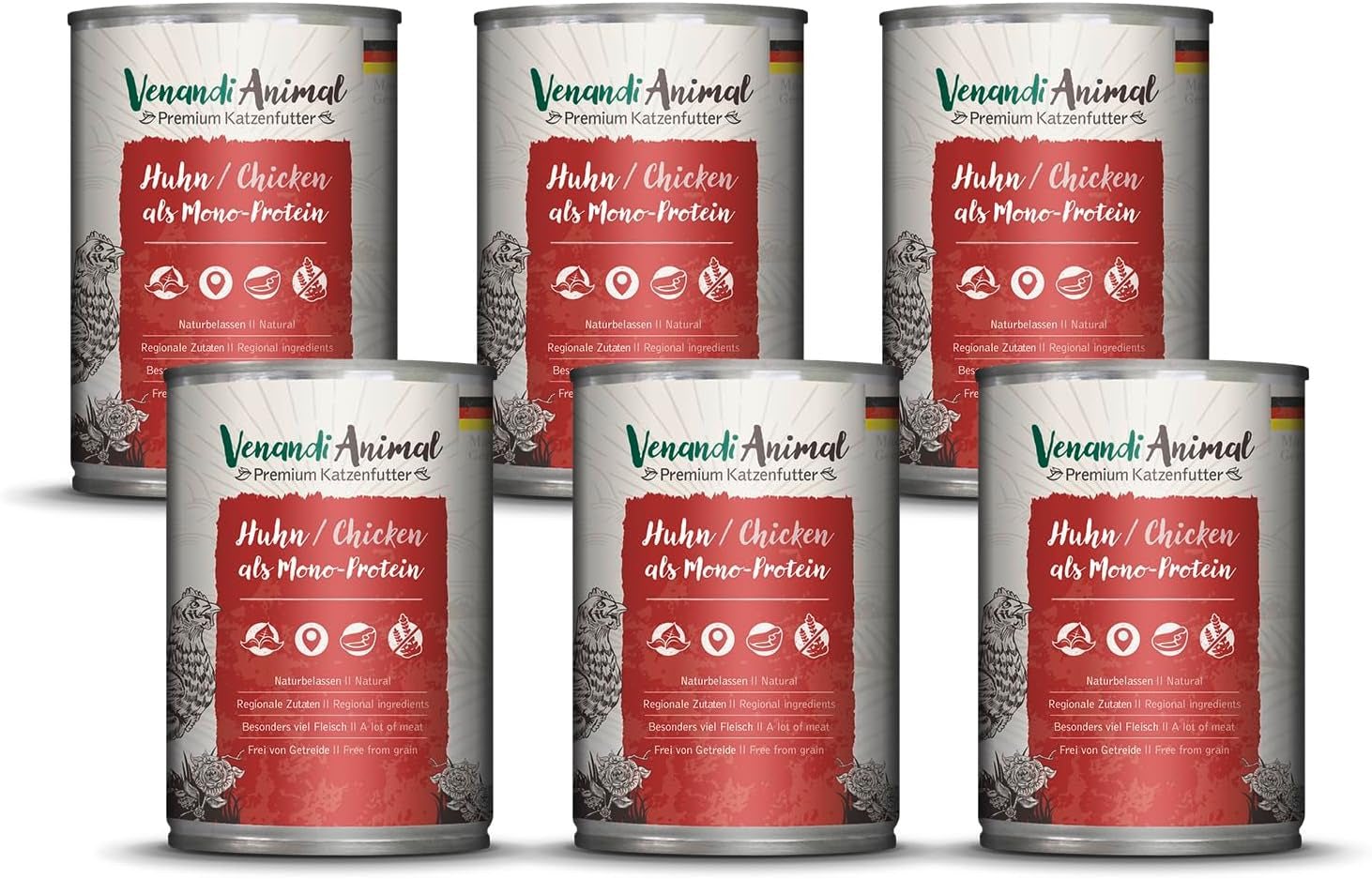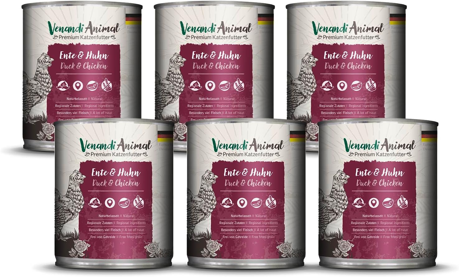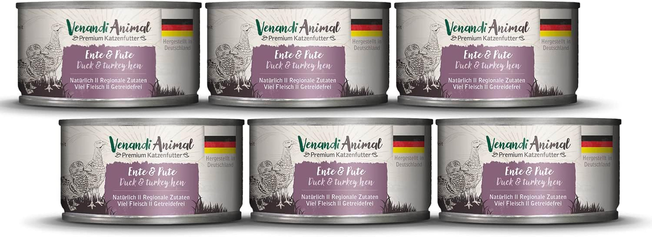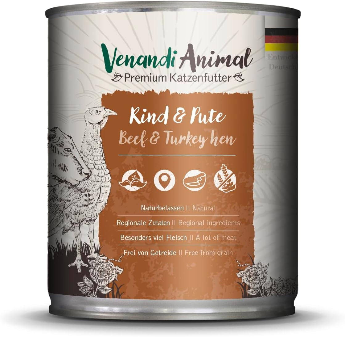Venandi Animal Premium Nedves táp macskáknak, Tasting Pack III, csirke, pulyka, marha, csirke + nyúl, borjú, pulyka, 6 X 200 G, gabonamentes és natúr, 1,2 kg -