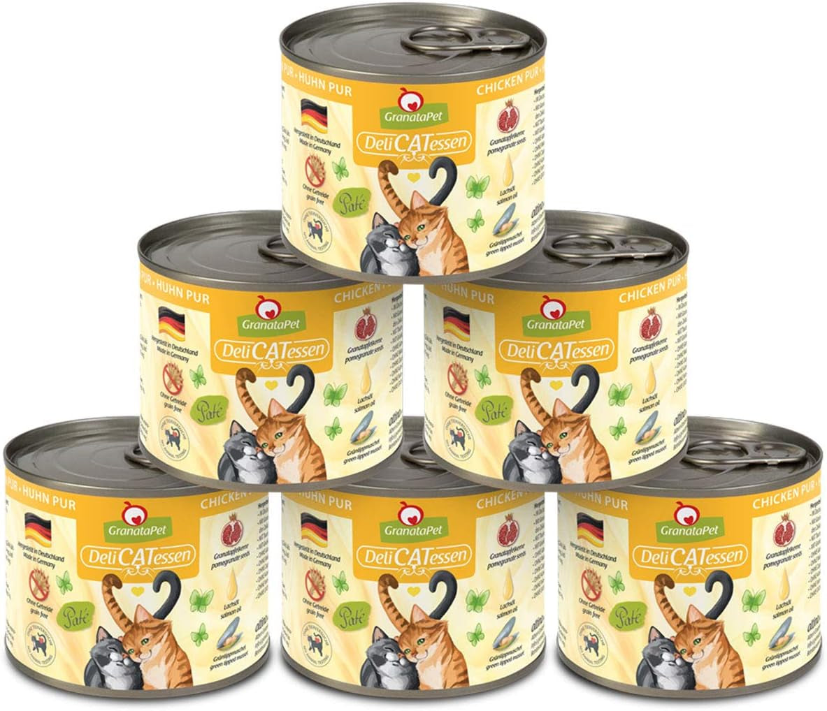 Granatapet Delicatessen Chicken PUR, nedves macskaeledel, gabonamentes és hozzáadott cukor nélkül, macskaeledel magas hús- és kiváló minőségű olajtartalommal, 6 X 400 G -