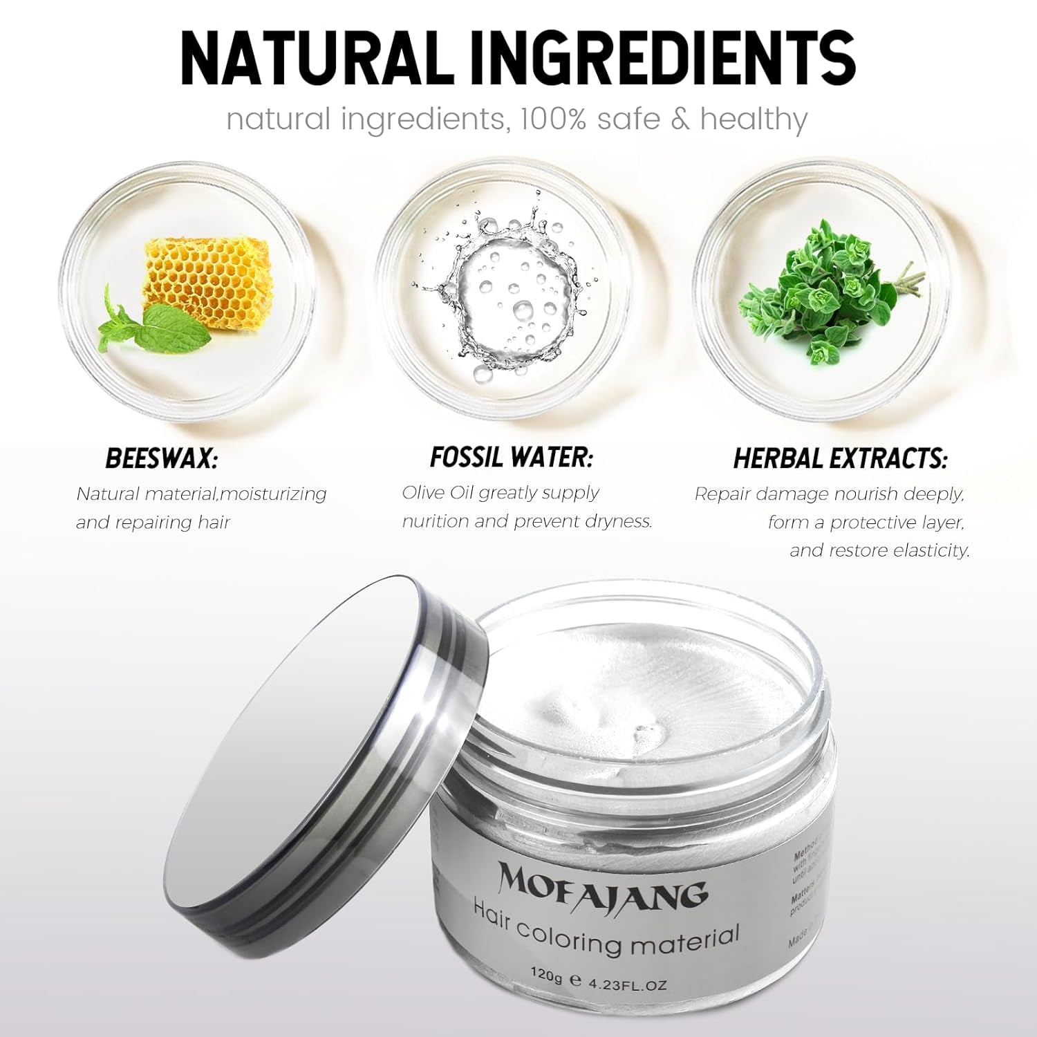 Ideiglenes hajszín, formázó hajtónus férfiaknak, nőknek, természetes hajpomádé, hajfesték viasz partira, cosplay és halloween, 4,23 uncia (ezüstszürke) -