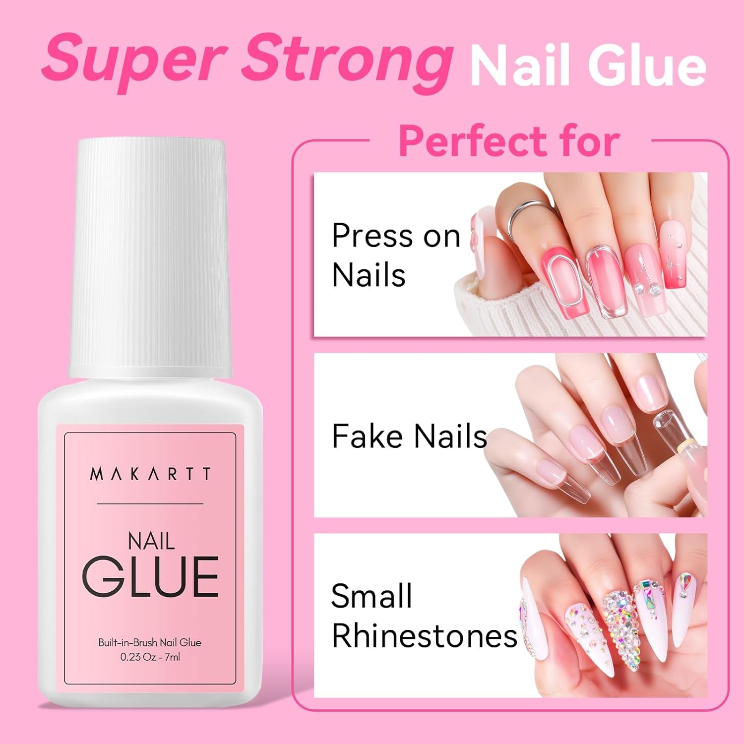 Makartt Extra erős körömragasztó műkörmökhöz, 5 másodperces gyors száradás, akril ragasztó körömcsúcsokhoz vagy javított körmökhöz, UV-sugárzás nem szükséges, 7 ml -