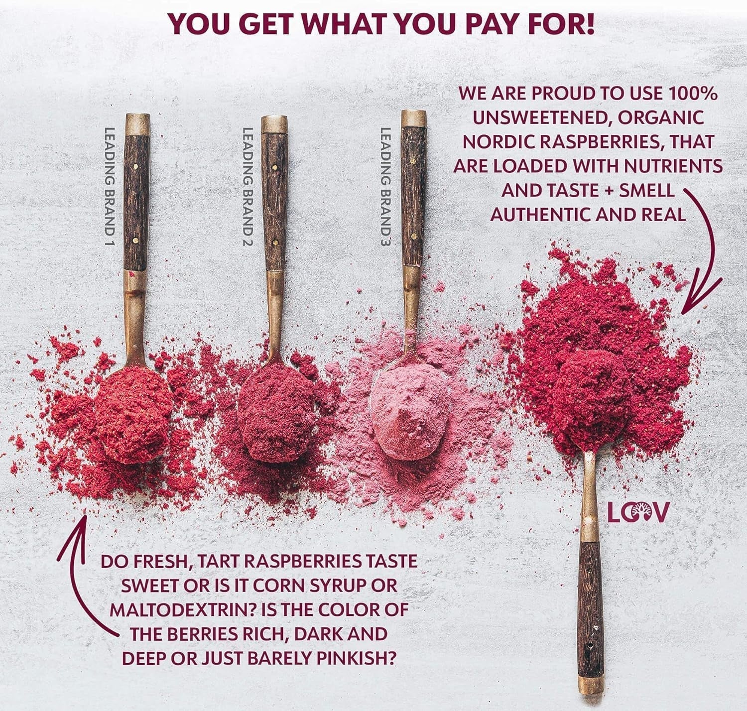 Pudră organică de zmeură, obținută din 100% zmeură întreagă, pulbere obținută din zmeură liofilizată, 171 g, din Europa, aprovizionare pentru 24 de zile, fără zahăr adăugat Produse deshidratate Naty Shop Titlu implicit