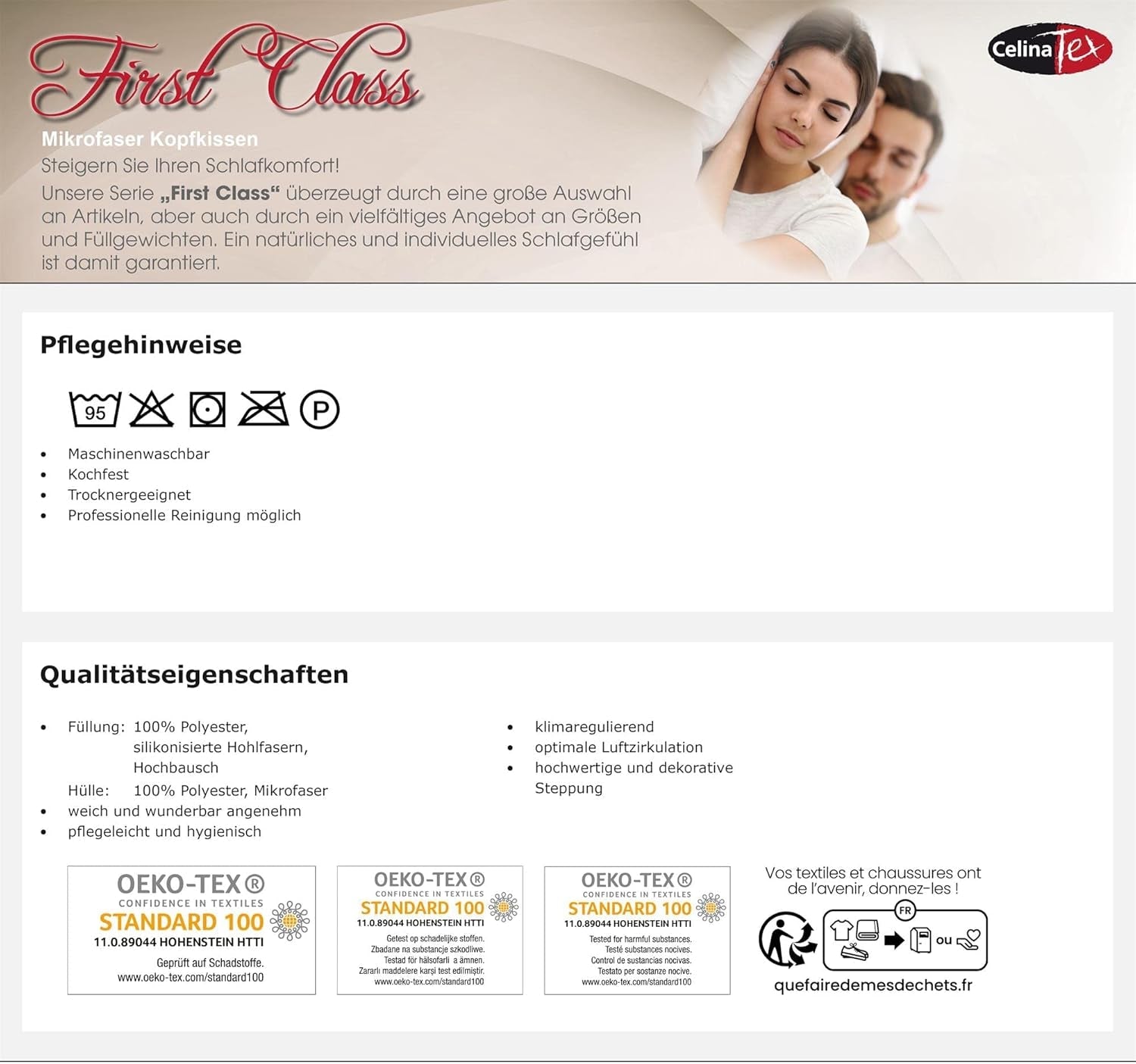 - Az ágypárnák puhák és csodálatosan kényelmesek, a természetes alvásérzetért. Kiváló minőségű, klímaszabályozó anyag az optimális légáramlásért, Öko-Tex Standard 100 jelzéssel
