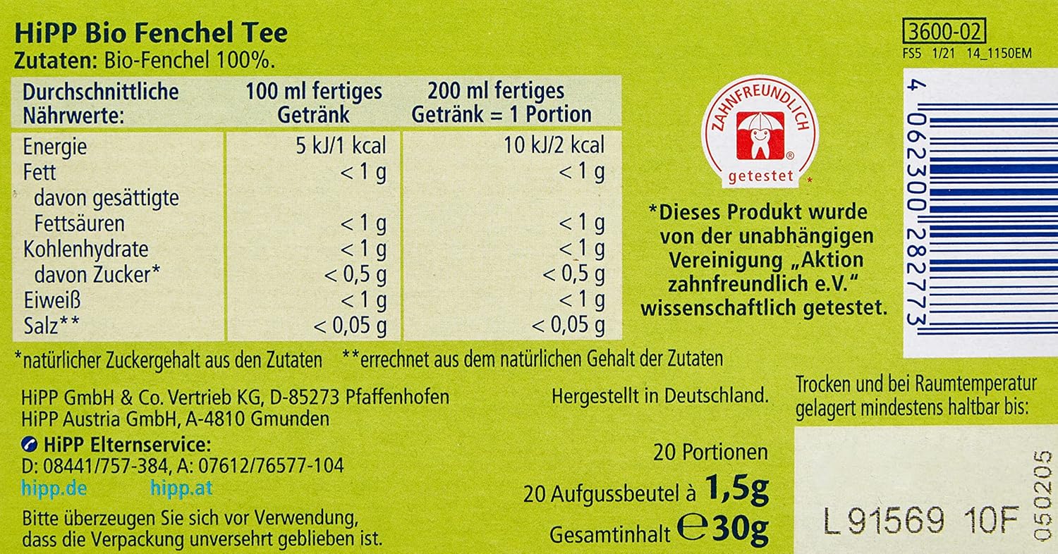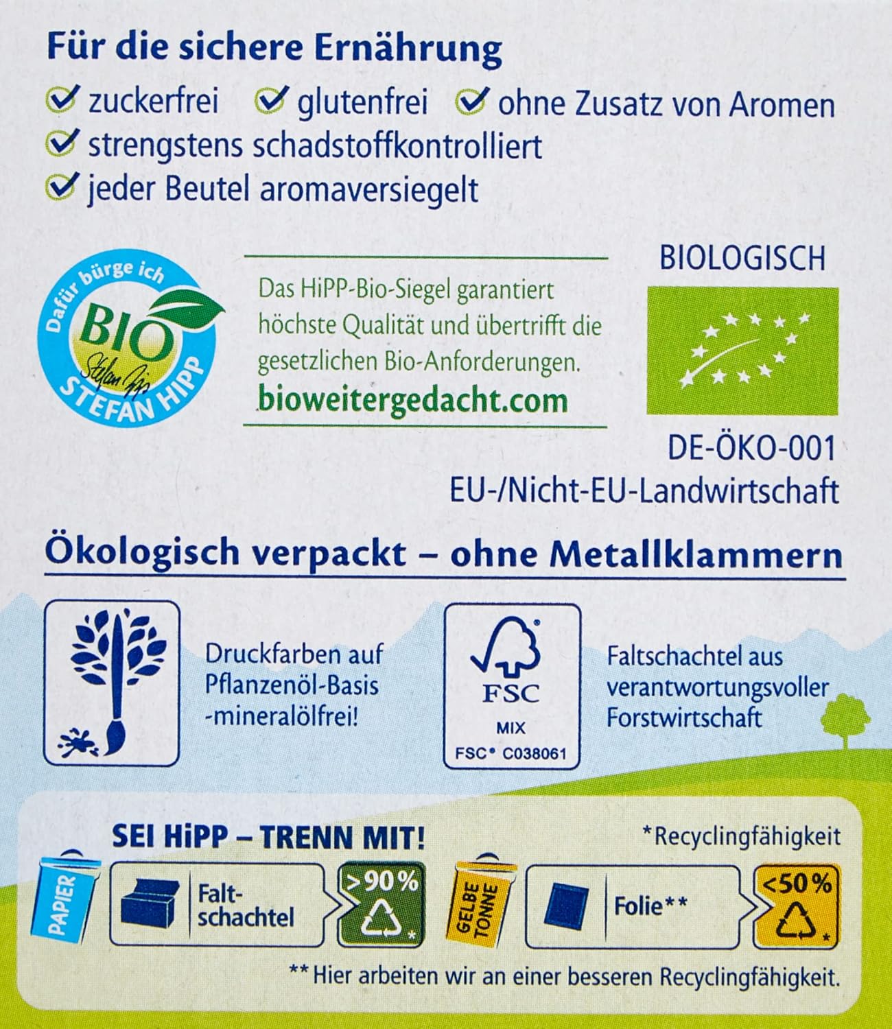A HiPP Organic Kamilla tea enyhe, nyugtató hatású tea. Kiváló minőségű bio kamillából készült, amelyet szigorúan ellenőriznek a káros anyagok tekintetében. A HiPP Organic Kamillatea a HiPP Special Care segítségével készül, és bizonyítottan fogbarát. Cukor és aromák vagy tartósítószerek hozzáadása nélkül ideális első teaként.