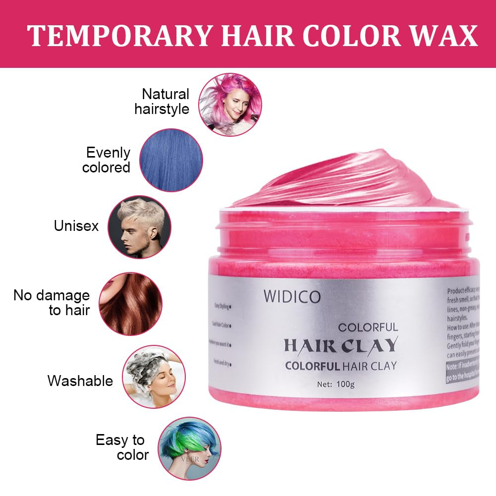 Ideiglenes Hajviasz Mosható Hajfesték Viasz Férfinak Női Hajviasz Hajfesték Natúr matt frizura Party Cosplay Halloween-100g (Rózsaszín)