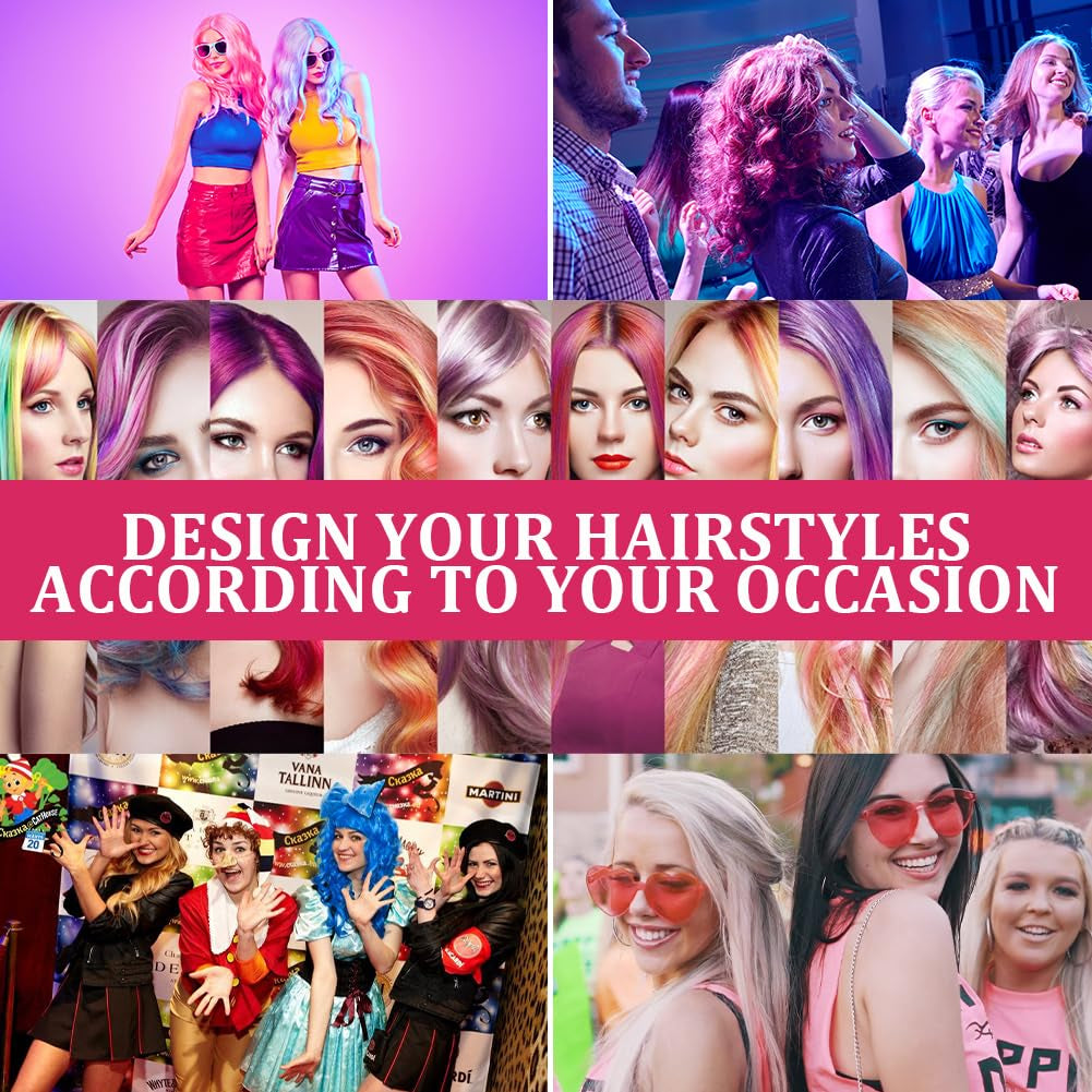 • 【FELHASZNÁLÁSI JELENET】 Az ideiglenes hajfesték viaszt új hajszínek kipróbálására használják, és különféle alkalmakra használható, beleértve a mindennapi viseletet, szerepjátékokat, fesztiválokat, lánybúcsúkat, éjszakai klubokat, karneválokat és halloweent.