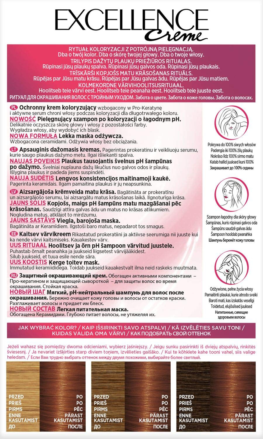 L'Oréal Paris Excellence: Tartós színezés hármas ápolással Akár 100%-os fedés a szürkéken Világos borostyán bronz