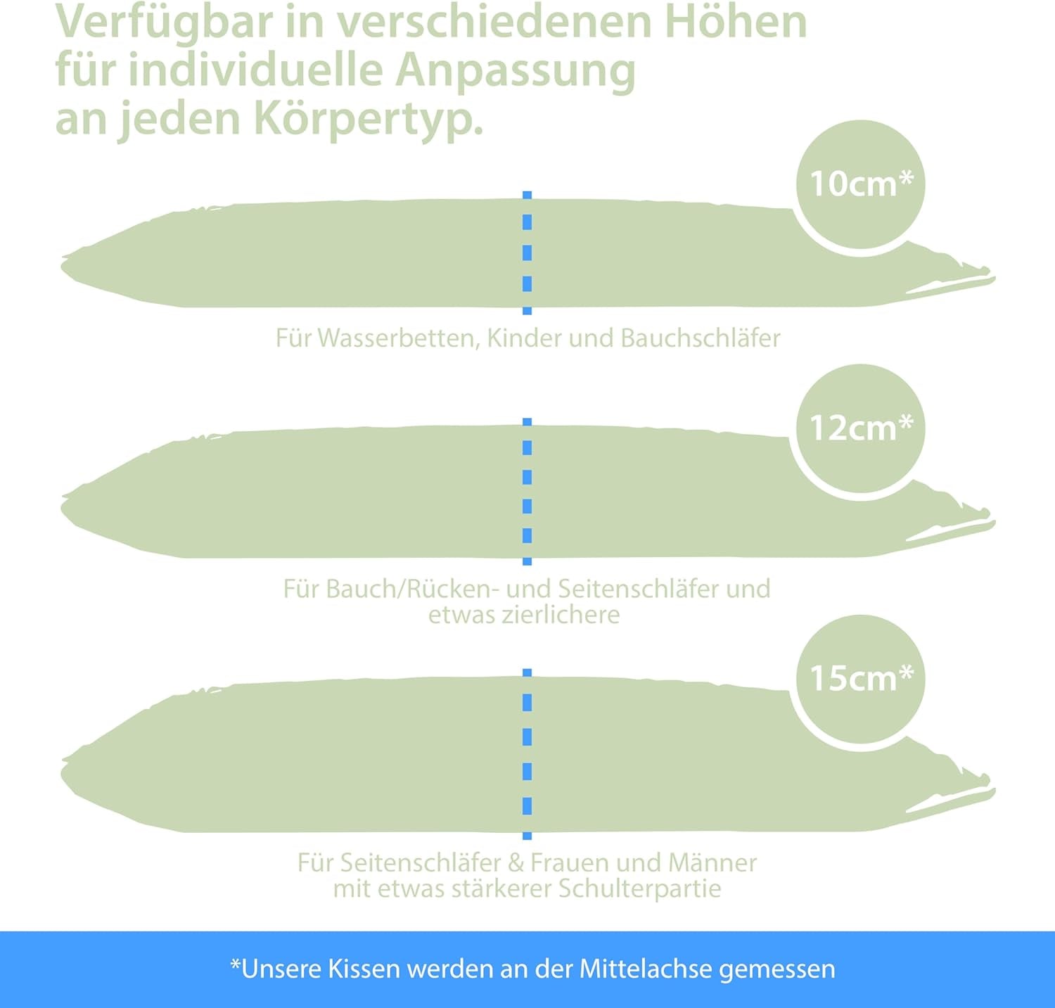 - [SOKOLDALÚSÁG] Különböző magasságokban (10 cm, 12 cm, 15 cm) kapható az egyes testtípusokhoz való egyéni alkalmazkodás érdekében. A párna rugalmas támasztékot kínál, amely tökéletesen alkalmazkodik, és így optimális kényelmet biztosít minden alvási pozícióhoz.