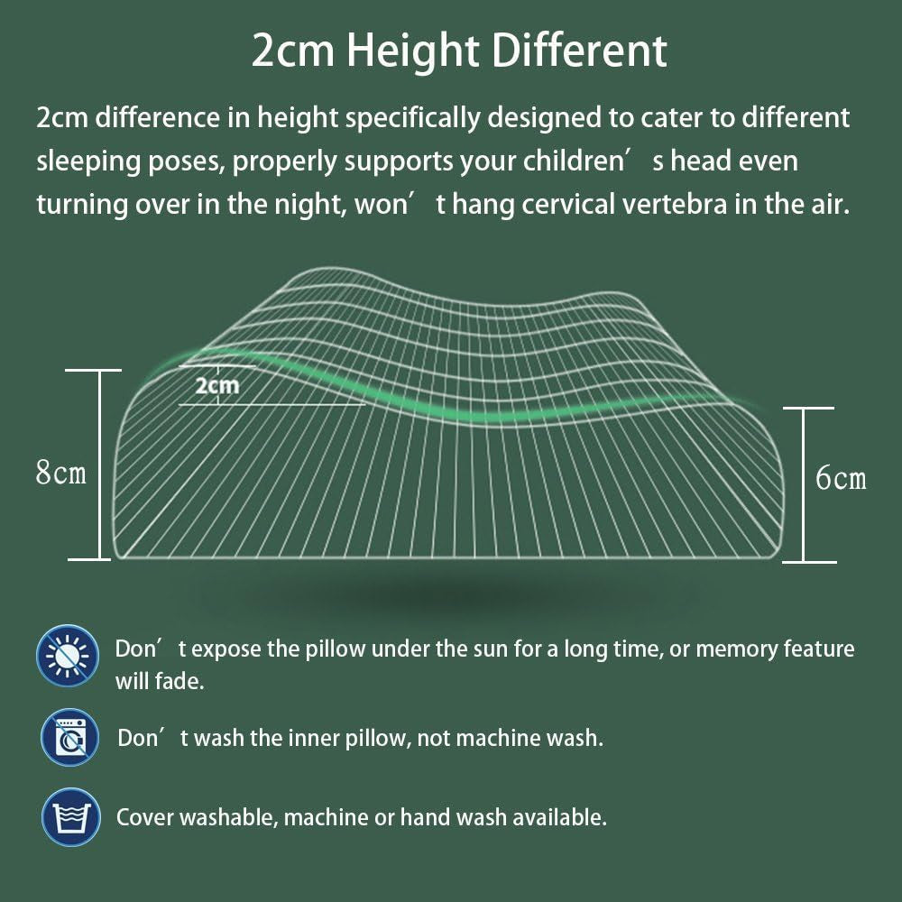• âœ" GYERMEK TÁRGY: 38*26*6/8cm, 3-12 éves korig. Fej- és nyaktámasz párna, tartósan javítja az alvást és elősegíti a gondtalan alvást, feszültség és nyomásérzés nélkül.