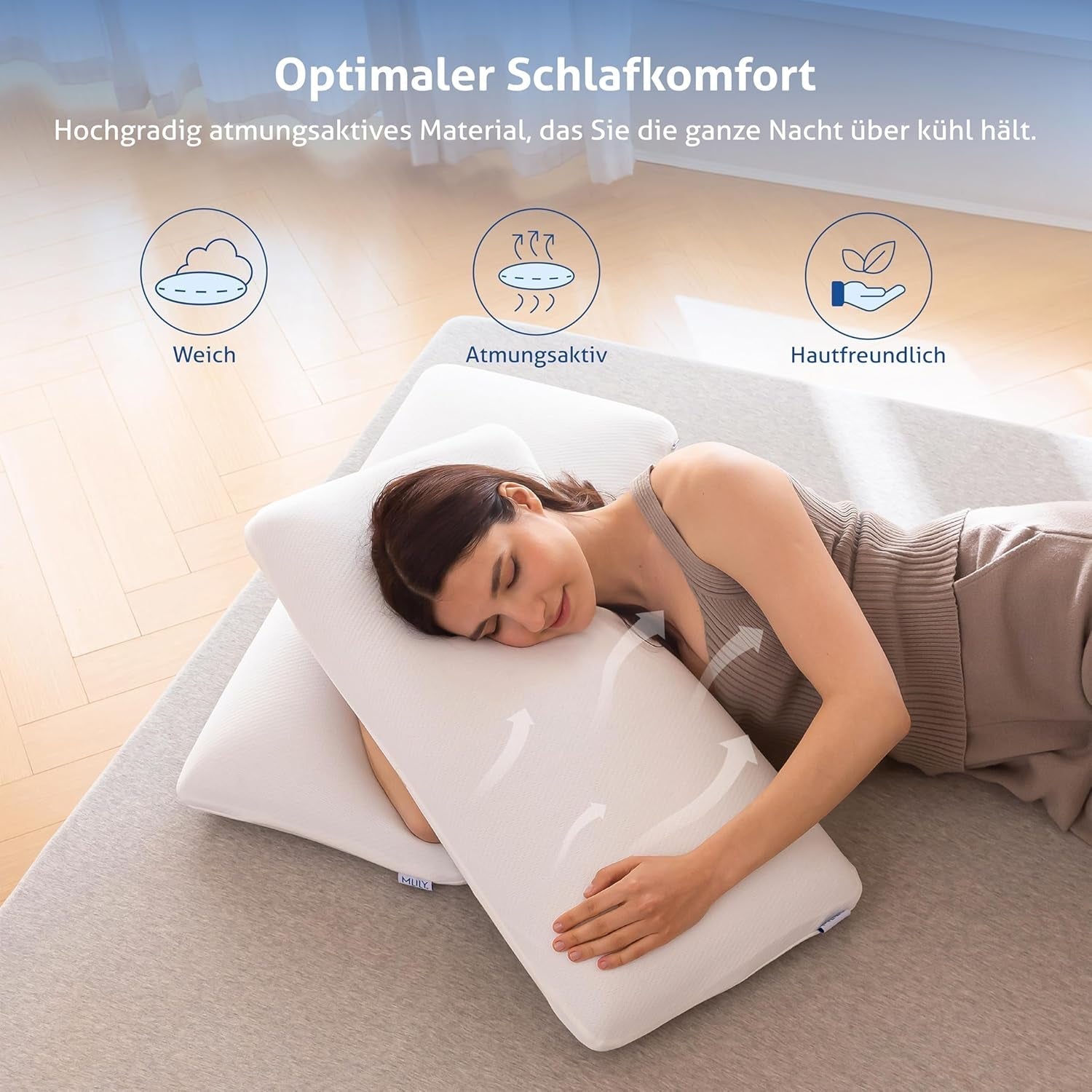 MLILY Pillow Essence 75X35 cm memóriahab párna, puha ergonomikus kék viszkoelasztikus hab nyaktámasztó párna, légáteresztő szellőzés, mosható huzat, 35x75 cm