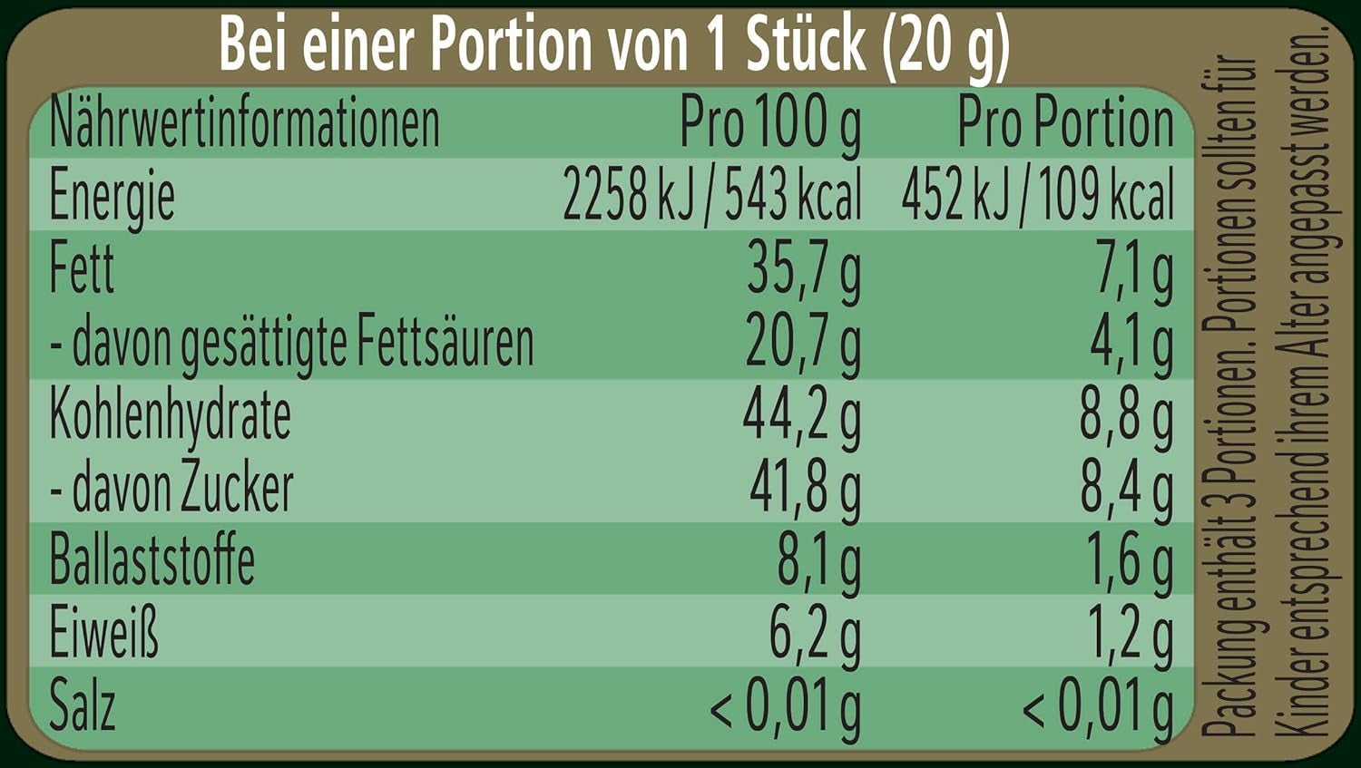 Összetevők: 1: Kakaómassza, cukor, kakaóvaj, emulgeálószer (lecitin), borsmentol, aroma.