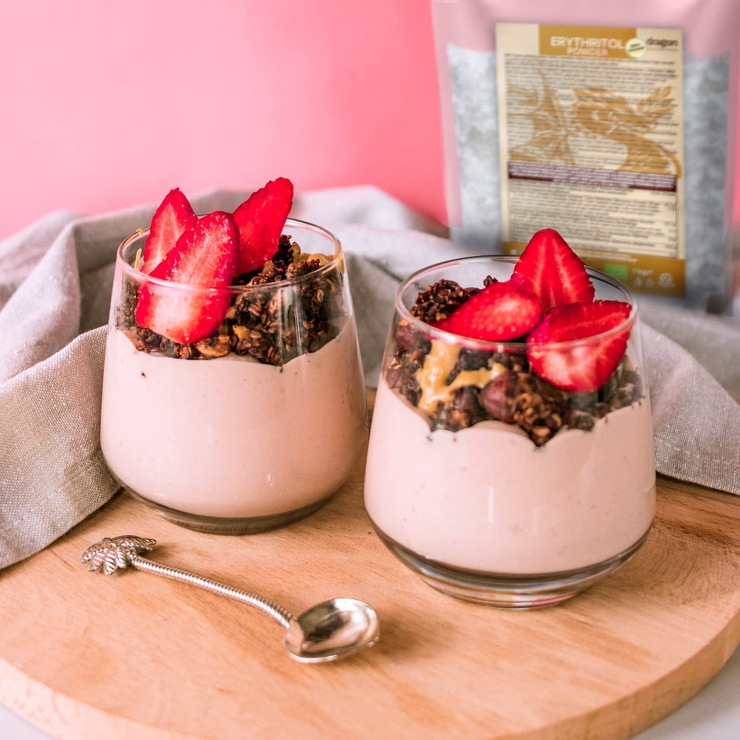 - Az eritrit kiváló édesítőszer shake-ekhez, turmixokhoz és gyümölcslevekhez; Es wird oft in verschiedenen Snacks, der Schokoladenherstellung verwendet und kann auch eine perfekte Komponente für Bakewaren und Desserts sein