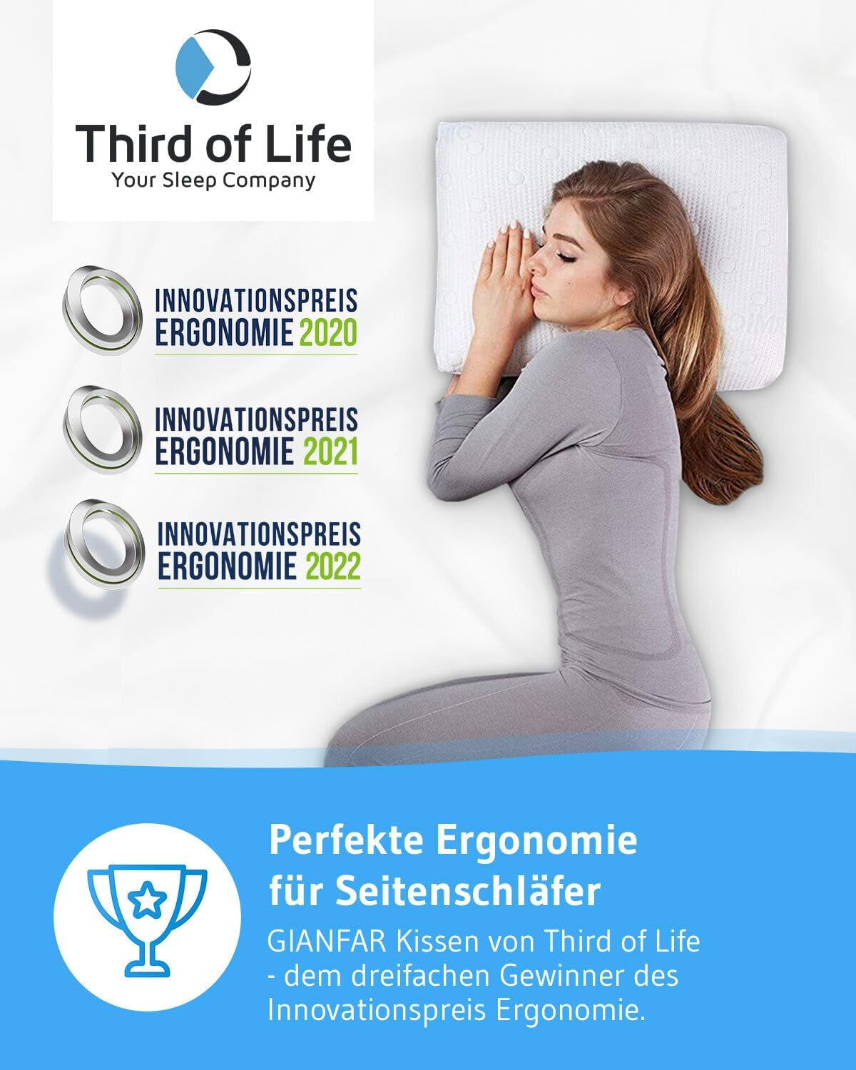 Pernă pentru dormit lateral GIANFAR | Pernă ortopedică pentru susținerea gâtului | Spumă de memorie ultra proaspătă împotriva durerilor de gât și migrenelor | Husă termoregulatoare | Pernă pentru dormit lateral cu coloană cervicală 55X40X12/10 cm Perne ortopedice cervicale Naty Shop Alb Thermic Bezug