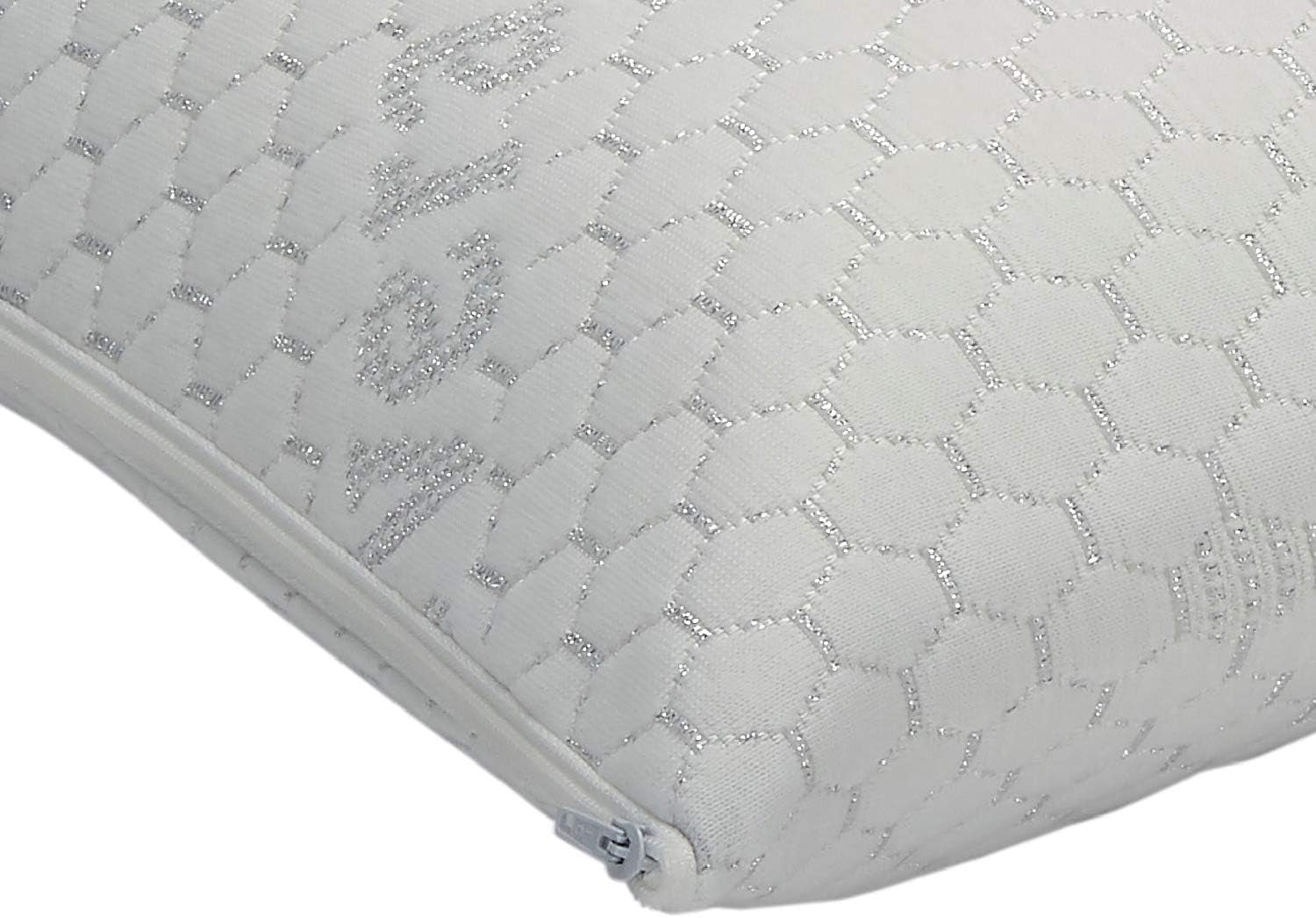 - A párna lenyűgöz memóriahabos magjával és külső oldalán ezüst varrással, amely elősegíti a stressz csökkentését és kellemes és pihentető alvást biztosít;