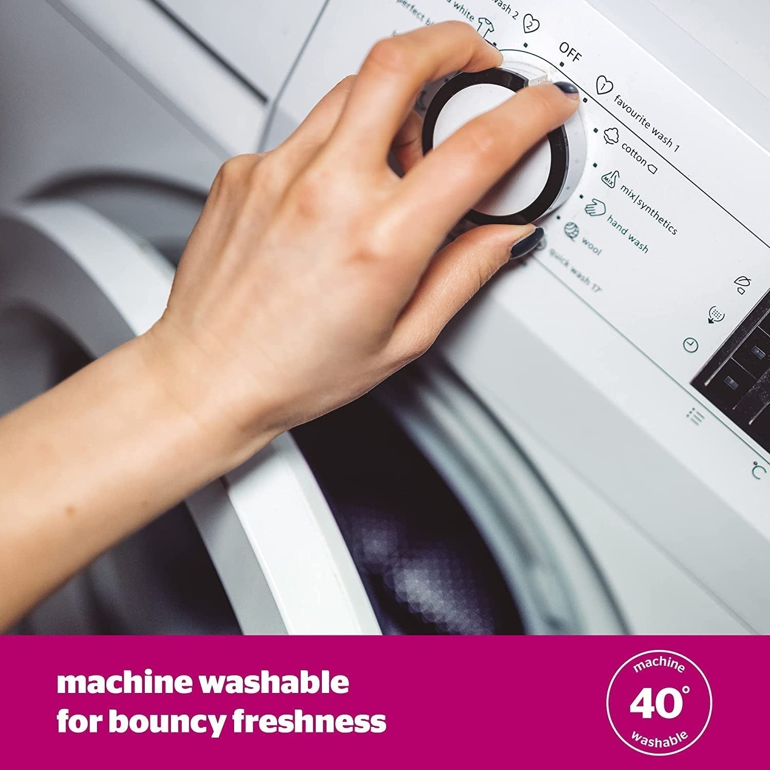 Párnáink teljesen mosógépben moshatók, így ideálisak az egész család számára. Egyszerűen tegye be őket a mosógépbe 40°C-ra, és használat előtt hagyja teljesen megszáradni.