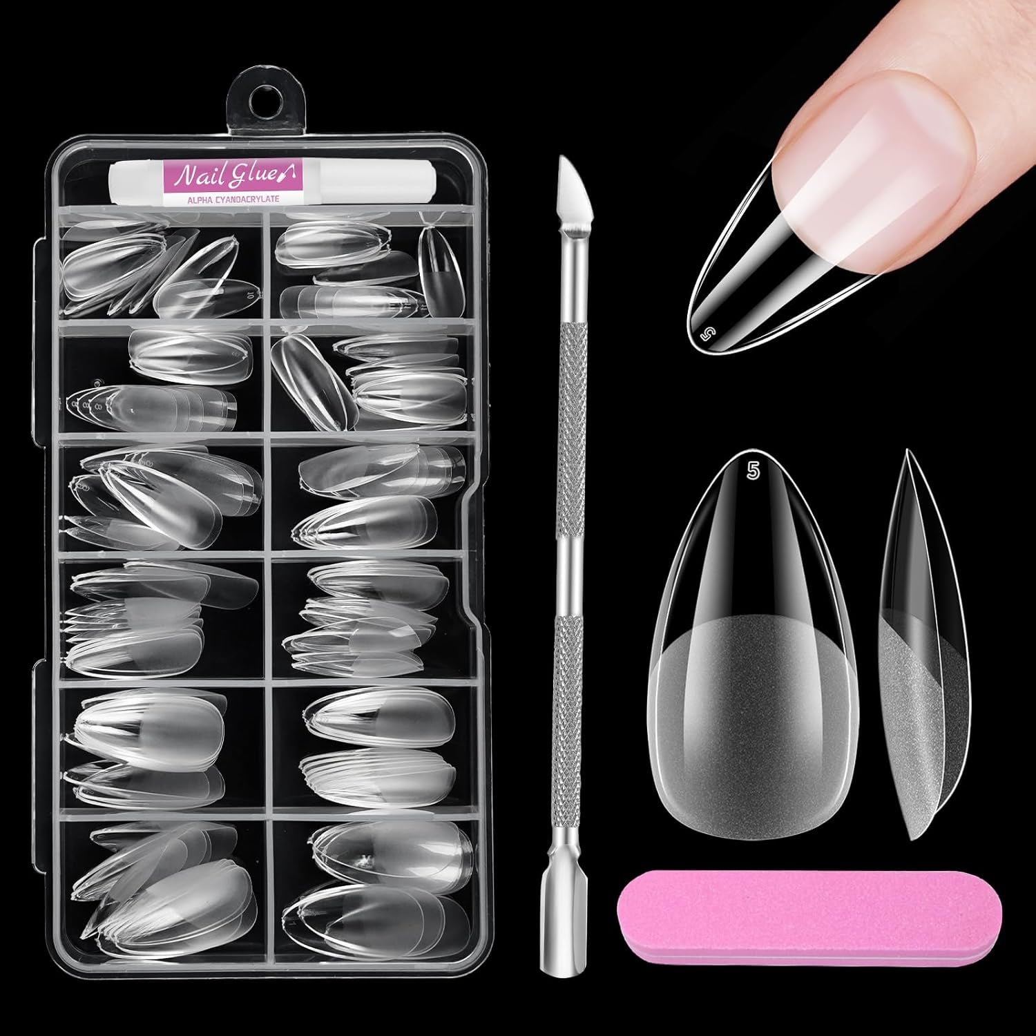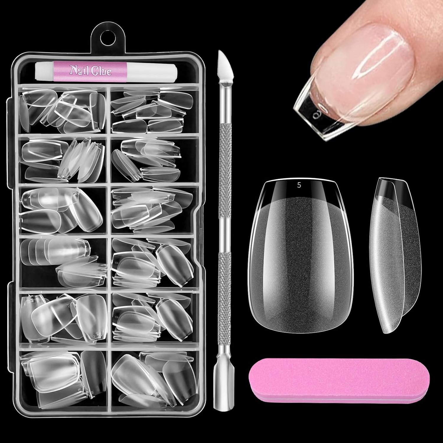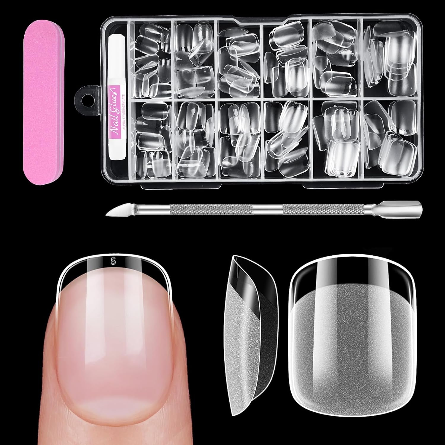 Teljes fedésű rövid körmök 120db 12 méretű rövid köröm tippek zselés körömhöz Ragasztó műkörmökre Ragasztó körömreszelő készlet körömpolírozó körömnyomó
