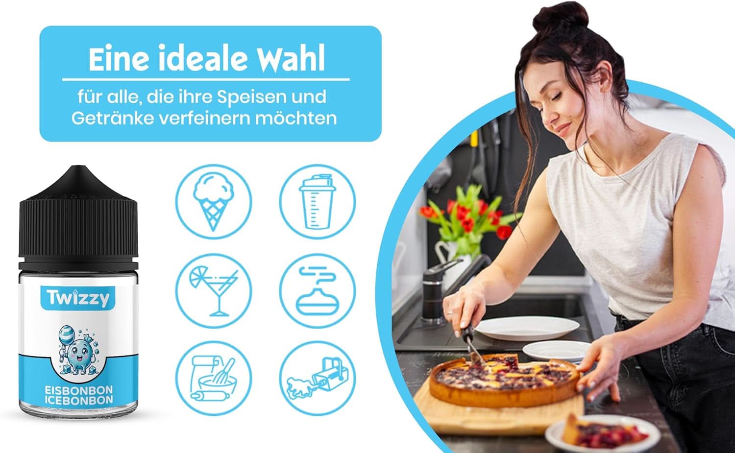 Fedezze fel a Twizzy jégcukor ízét, amely igazi gazdagítja konyháját. Ez az intenzíven illatos íz kivételes ízélményt kínál, és kiválóan alkalmas különféle ételek és italok ízesítésére. Tökéletesen passzol kávéhoz, turmixokhoz, süteményekhez, túróhoz és joghurthoz, és különleges ízt ad minden recepthez. Popsaízünk cukor-, zsír- és laktózmentes, így ideális az egészséges táplálkozáshoz. Vegánok számára is alkalmas, és rugalmasságot biztosít a használat során. Az ízét saját ízlése szerint alakíthatja kedvenc édesítőszerének hozzáadásával. A kényelmes csepegtetős palack egyszerű és pontos adagolást tesz lehetővé, így az íz ideális főzéshez, sütéshez és italokhoz. Tökéletes a kreatív szakácsok és amatőr pékek számára, akik egy kis innovációt és gyümölcsösséget szeretnének adni receptjeikhez. Fedezze fel pálinka ízének sokoldalúságát, és tapasztalja meg, hogyan emelheti főzeteit a következő szintre